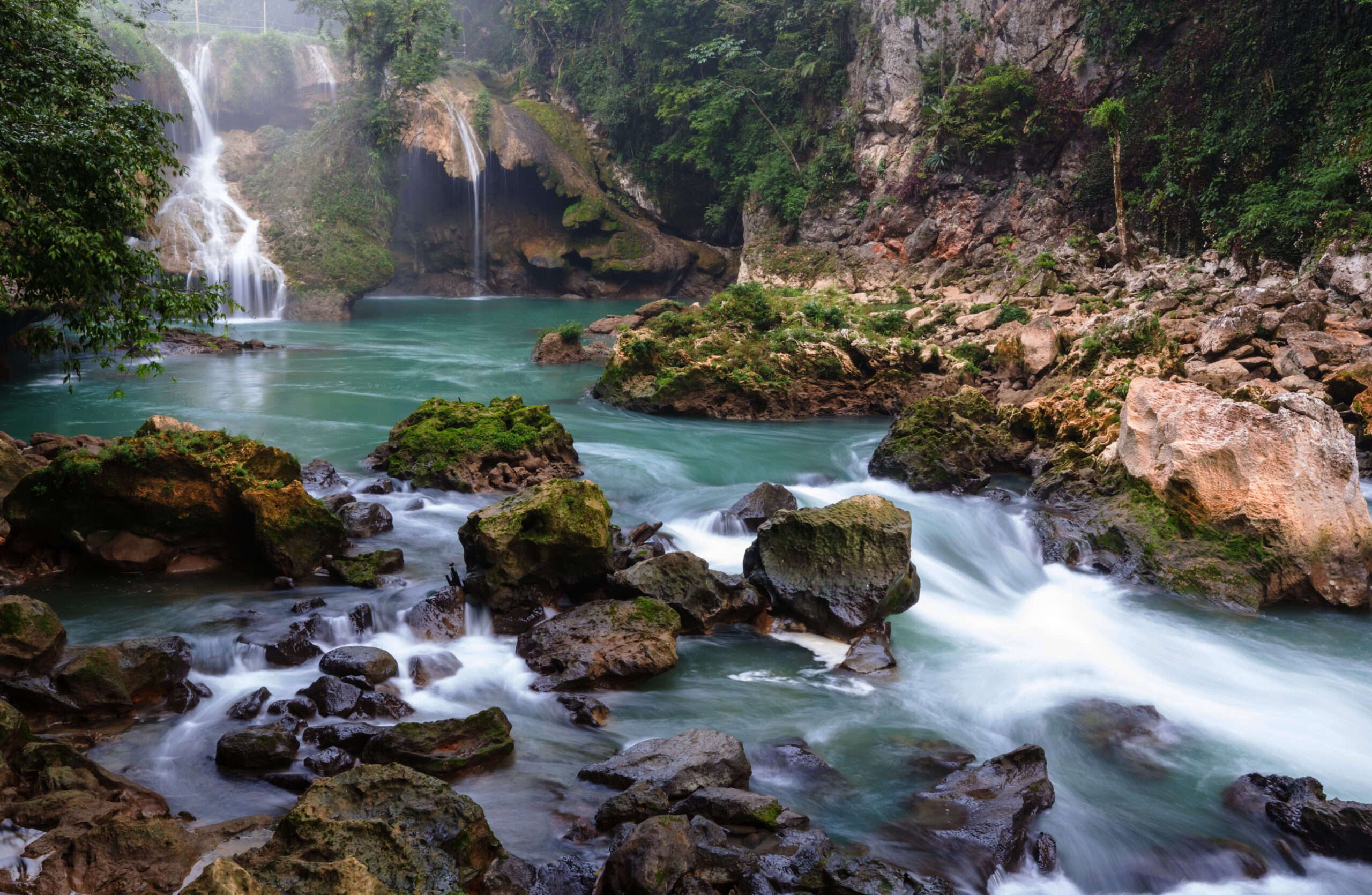 La Gran Selva Maya de Guatemala se extiende sobre aproximadamente 2 millones de hectáreas en el departamento de Petén, colindando con México y Belice, formando un ecosistema continuo que conecta la Reserva de la Biosfera Maya con áreas protegidas transfronterizas. Su relieve es mayormente plano, con algunas elevaciones suaves, planicies aluviales y zonas de transición hacia los ríos caudalosos como el Usumacinta y el San Pedro, así como numerosos lagos y humedales de importancia ecológica. Esta configuración geográfica permite la existencia de selvas húmedas perennifolias y caducifolias, selvas medianas y bajas, y ecosistemas acuáticos asociados, creando un mosaico de hábitats que sostiene la alta biodiversidad que caracteriza a esta región. Entre la flora predominan especies arbóreas como la ceiba (Ceiba pentandra), tzalam (Cedrela odorata), caoba (Swietenia macrophylla), chicozapote (Manilkara zapota), palo de tinte (Haematoxylum campechianum) y otras especies endémicas, muchas de las cuales tienen usos medicinales, rituales o maderables. La selva es refugio para fauna emblemática como el jaguar (Panthera onca), el tapir (Tapirus bairdii), monos aulladores y araña, ocelotes, guacamayas rojas (Ara macao), tucanes, caimanes y tortugas de río, así como una diversidad de anfibios, reptiles e insectos que mantienen la estabilidad de los ecosistemas.